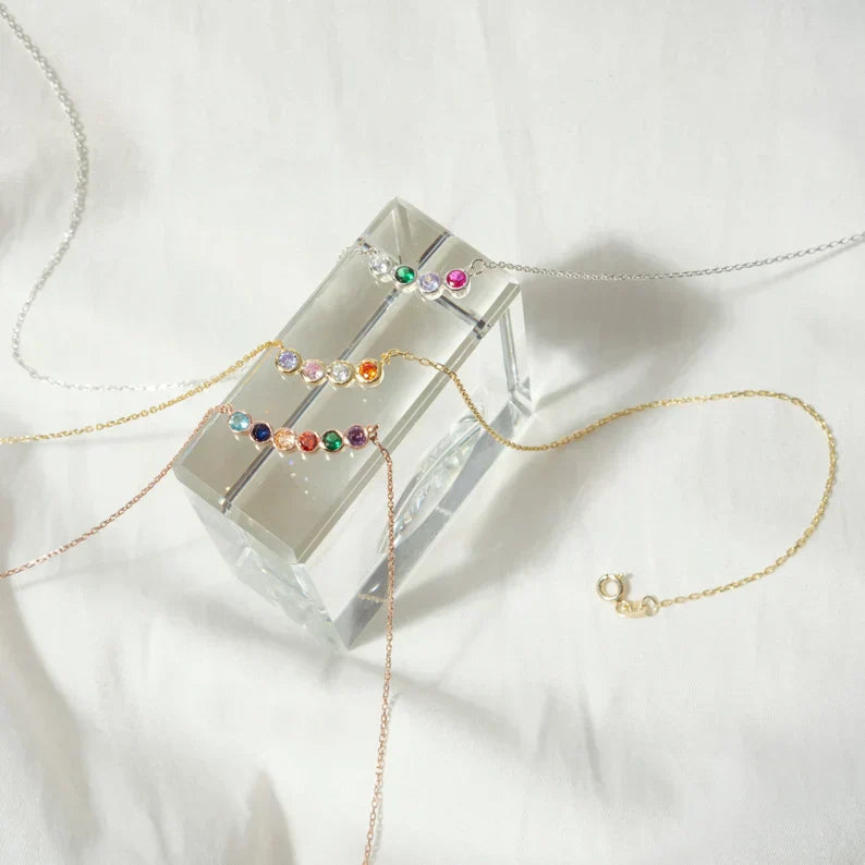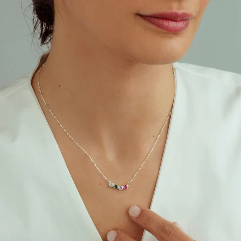 Celebrate the bonds of family with the Patrizia Family Birthstone Necklace, a personalised jewellery piece designed to hold the names and birthstones of your loved ones. This timeless necklace makes the perfect heartfelt gift.